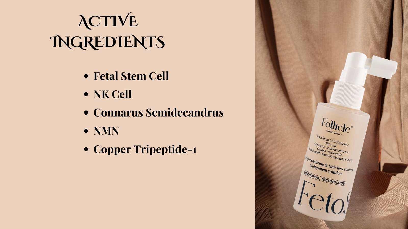Fetoscell Follicle Hair Tonic is a hair tonic that claims to promote hair growth and improve hair health. It is manufactured by TNS(티앤에스) and is available for purchase in South Korea.