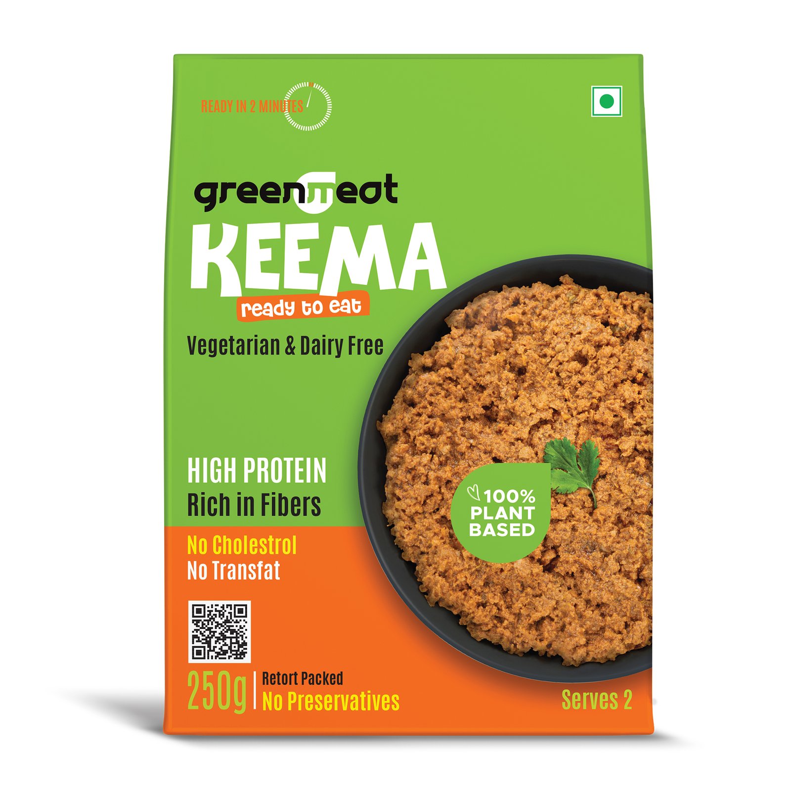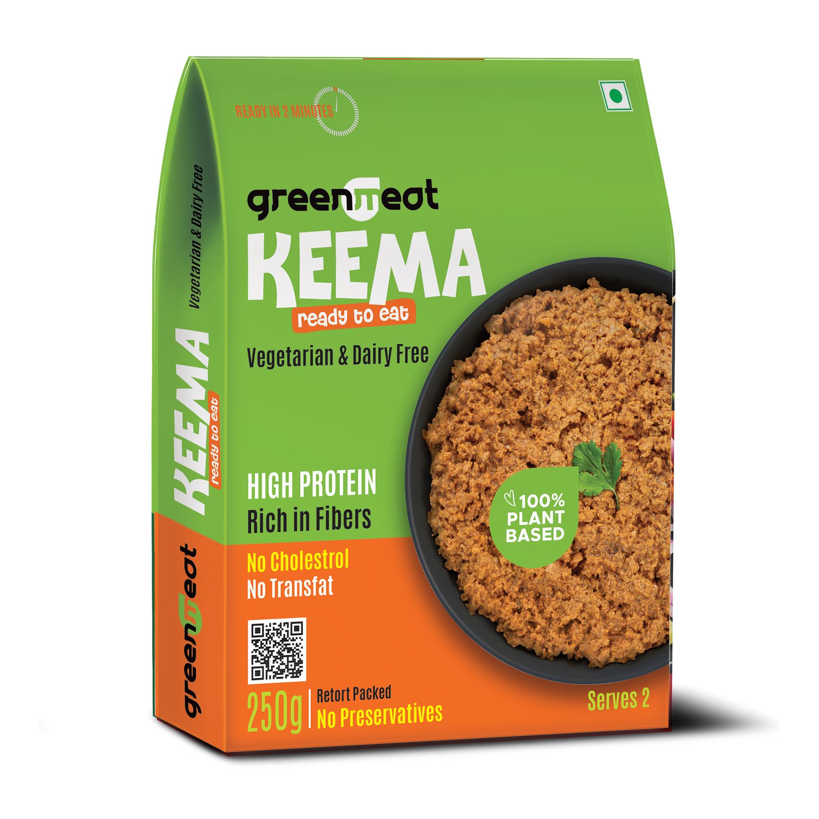 GreenMeat Keema is a flavorful, ready-to-cook plant-based alternative to traditional minced meat, crafted for the conscious eater. Made from 100% plant-based ingredients, it is completely vegetarian, dairy-free, and free from cholesterol and trans fats. Rich in protein and dietary fiber, GreenMeat Keema offers a nutritious and satisfying option without compromising on taste or texture. Perfect for a variety of dishes—from keema pav and stuffed parathas to pasta, tacos, and more—it’s a versatile, healthy, and sustainable choice for everyday cooking. Enjoy the rich, spiced taste of keema, powered entirely by plants.Ready in just 2 minutes. Ideal for quick meals without compromising on taste or nutrition.